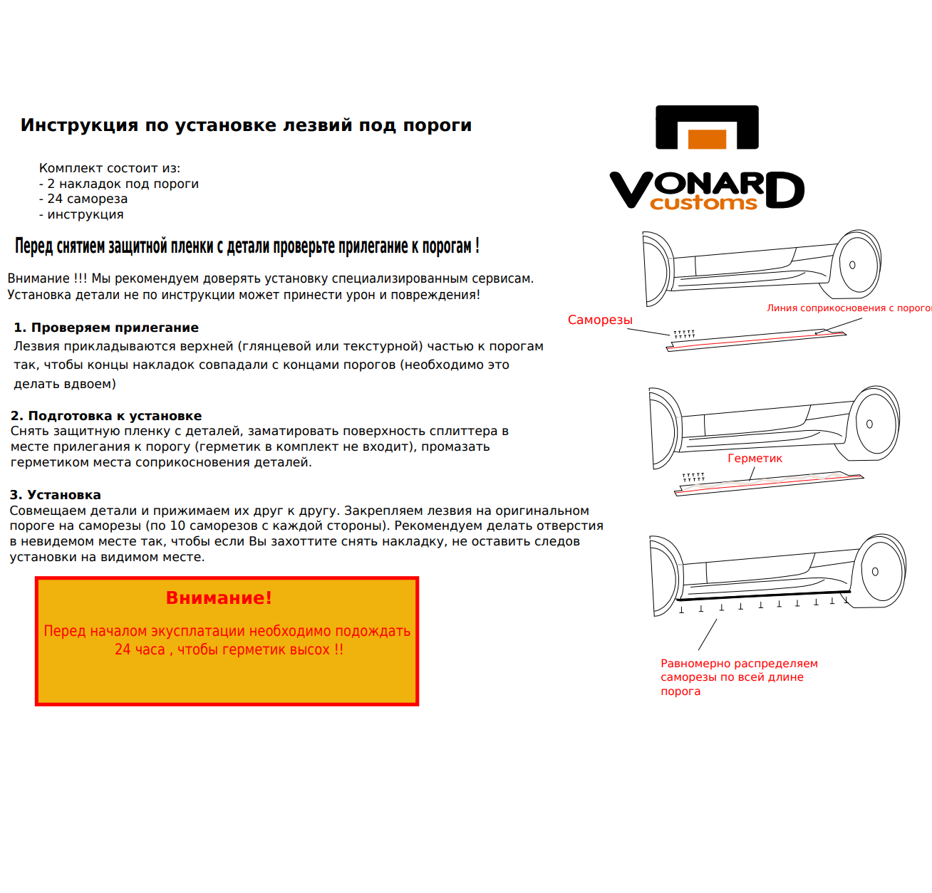 * Легко установить - крепеж (саморезы) для установки и инструкция в комплекте.