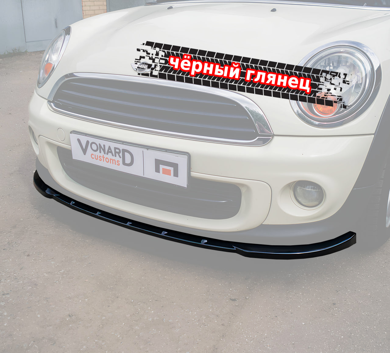 Сплиттер лезвие переднего бампера подходит для автомобилей MINI One/Cooper Hatch (R56) с 2007 по 2013 года выпуска.
