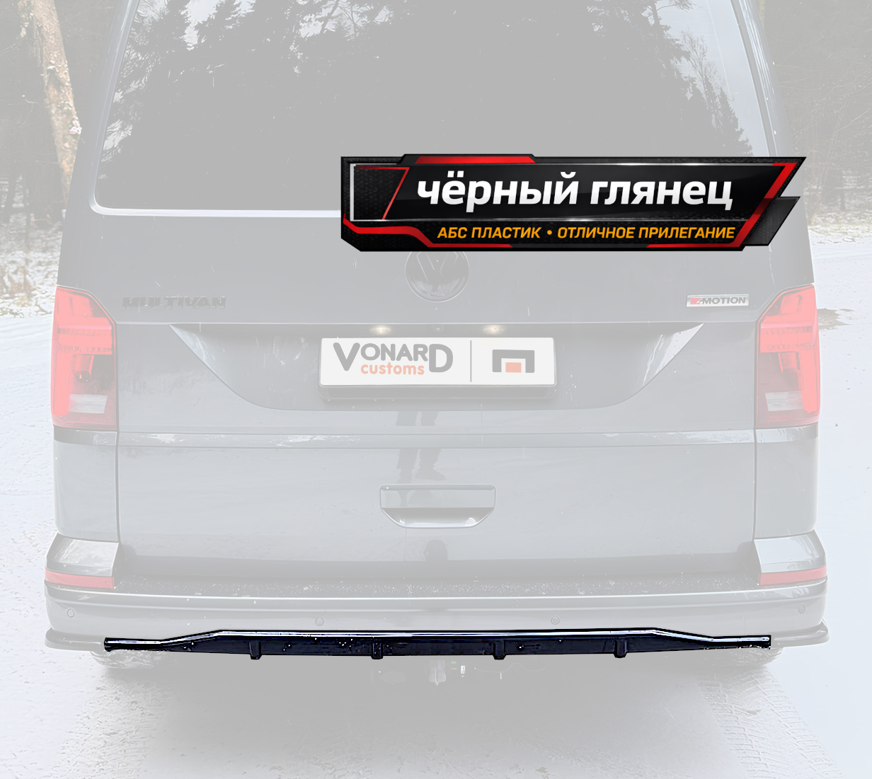 Диффузор накладка заднего бампера подходит для VW T6 / T6.1 с 2019 по 2024 год выпуска.